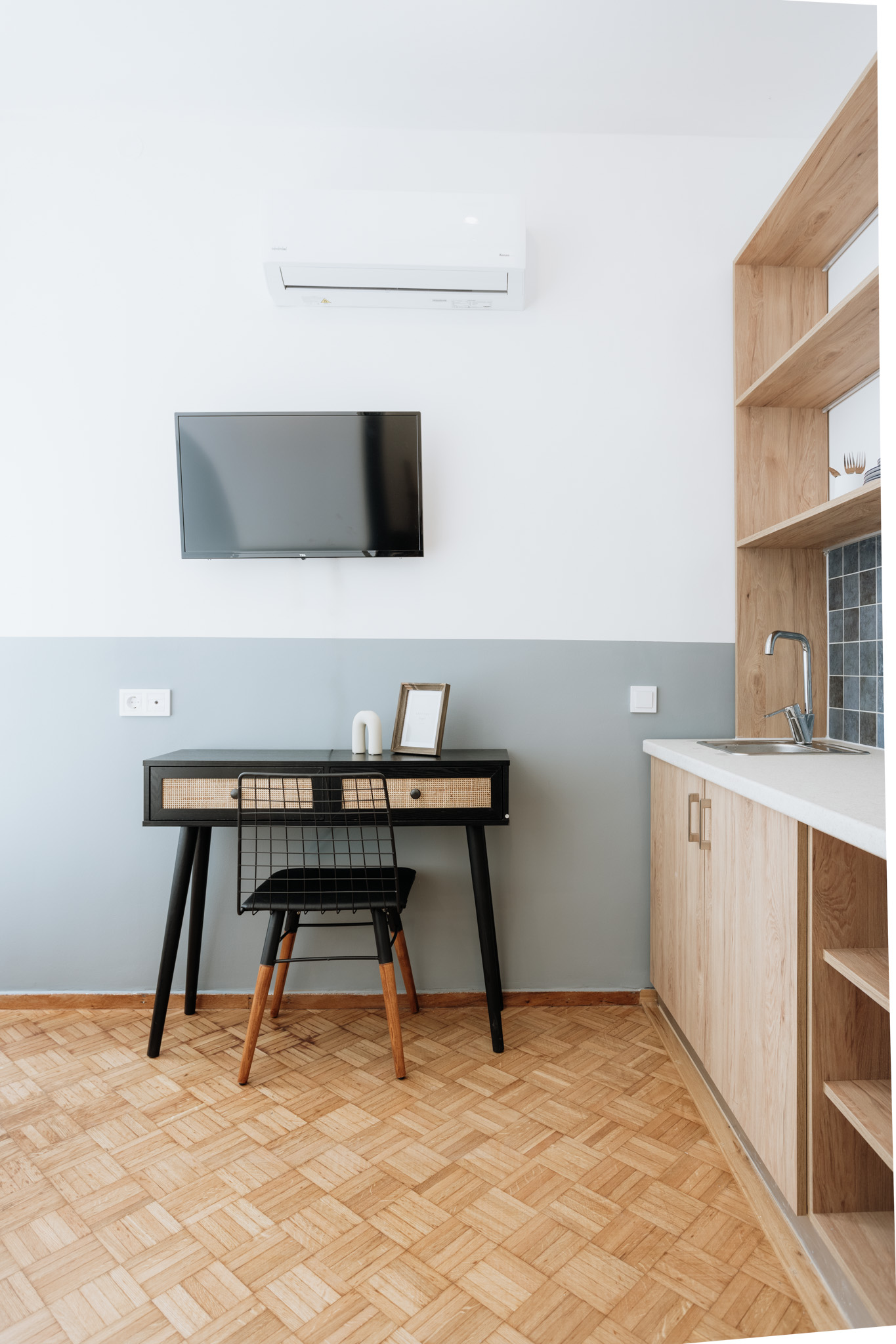 Το Light Blue Room ειναι ενα δίκλινο δωμάτιο διαθέτει δωρεάν προϊόντα περιποίησης και ιδιωτικό μπάνιο με ντους και στεγνωτήρα μαλλιών. Η κουζίνα του δίκλινου δωματίου, η οποία διαθέτει ψυγείο, είναι διαθέσιμη για μαγείρεμα και αποθήκευση τροφίμων. Το κλιματιζόμενο δίκλινο δωμάτιο προσφέρει τηλεόραση επίπεδης οθόνης, ηχομονωμένους τοίχους, καφετιέρα, ντουλάπα καθώς και θέα στη θάλασσα. Η μονάδα προσφέρει 1 κρεβάτι.